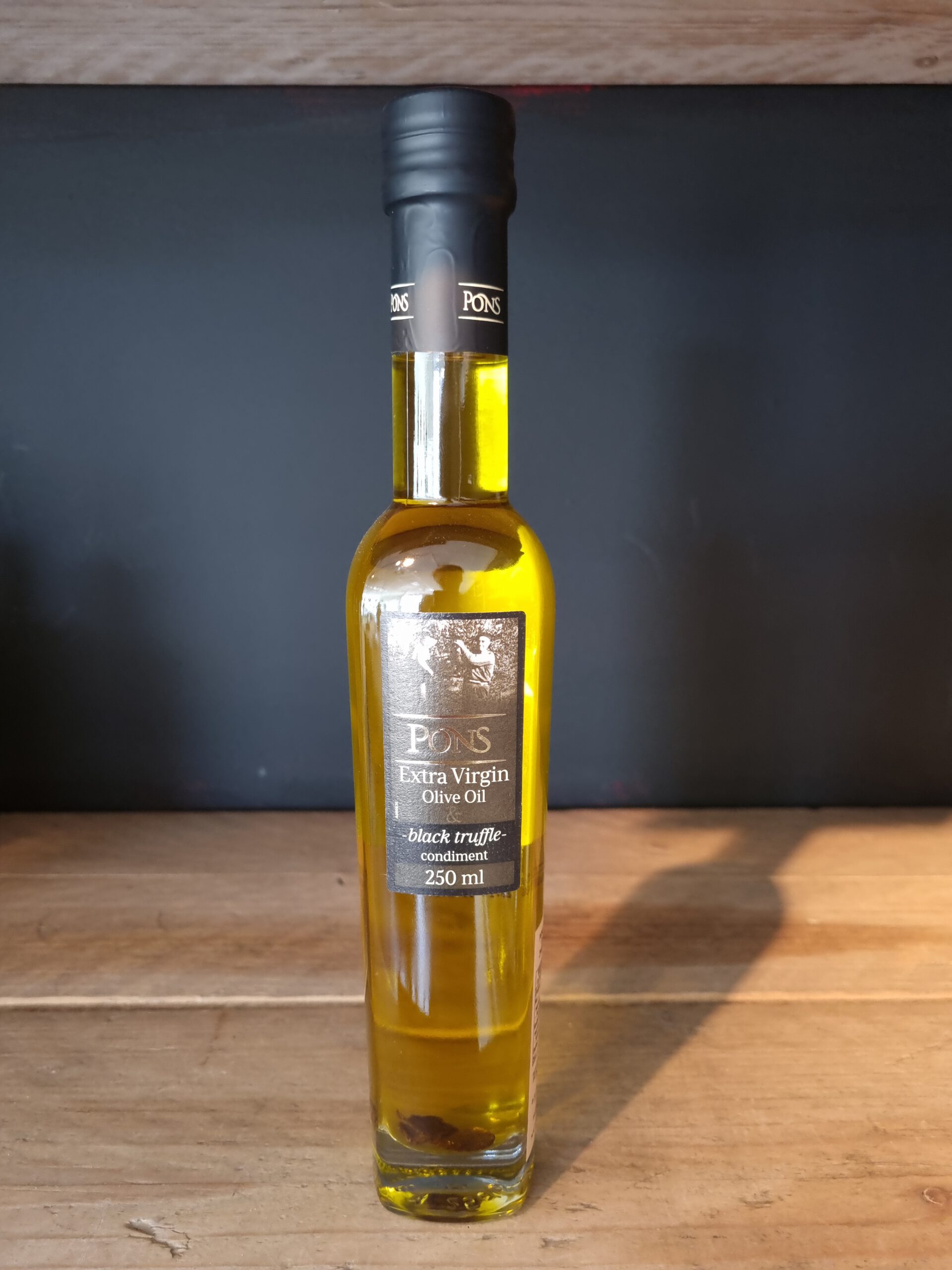 Deze Zwarte Truffel Olijfolie is gemaakt van Extra virgen olijfolie gemaakt met arbequina-olijven zwarte truffel.